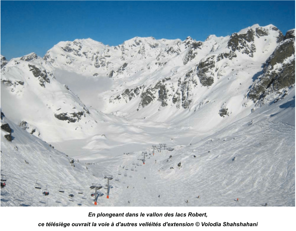 La « course à l’armement » des stations dénoncées par le maire de Grenoble Eric Piolle a encore de beaux jours devant elle. Il faut dire que le télésiège plongeant du sommet de la station de Chamrousse dans le très beau vallon des lacs Robert ouvrait déjà la voie à de nouvelles convoitises. On peut espérer que ce projet anachronique restera au fond d’un tiroir, ou qu’à défaut, il conduira à une forte mobilisation des skieurs de randonnée et autres amoureux de la montagne de la cuvette grenobloise et de ses environs.