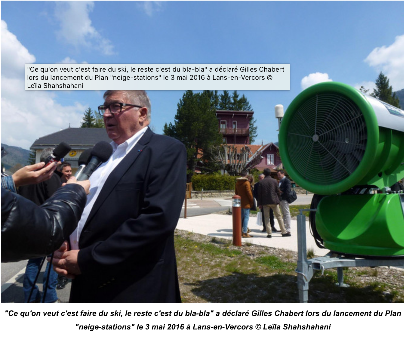 Ce matin mardi 3 mai 2016, le président de la Région Auvergne-Rhône-Alpes Laurent Wauquiez et son conseiller montagne Gilles Chabert ont lancé le plan « neige-stations » dans la station iséroise de Lans-en-Vercors. Le programme est clair : priorité absolue aux canons à neige et aux retenues collinaires.