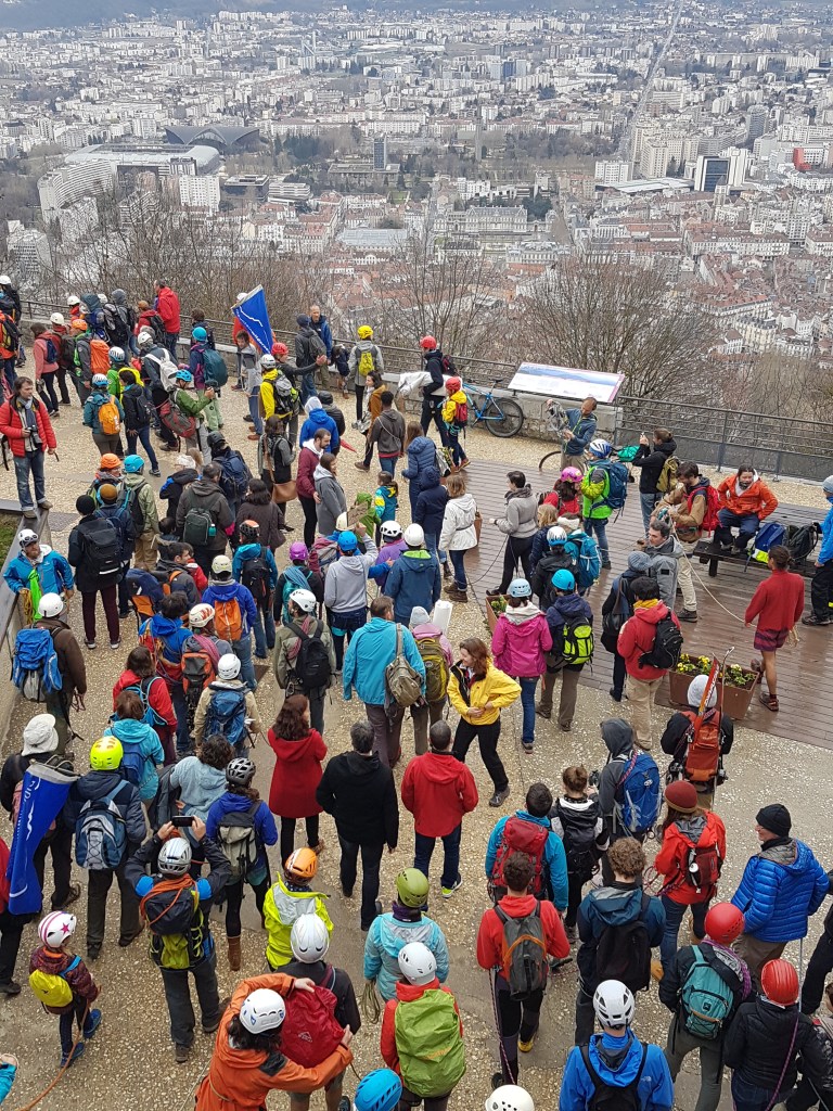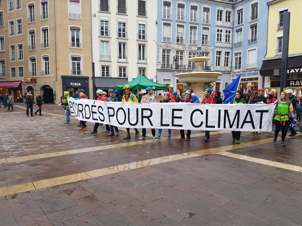 Encordés et casqués depuis le sommet de la Bastille qui domine la ville, ils étaient environ 400, dont le maire de Grenoble Eric Piolle ou l’alpiniste Lionel Daudet, à rejoindre le centre de Grenoble pour dire leur inquiétude et témoigner des effets du réchauffement dans les montagnes, présentées comme les sentinelles de l’évolution du climat : reculs des glaciers, éboulements de falaises liés à la dégradation du permafrost. Frédi Meignan, président de Mountain Wilderness et ex-gardien du refuge du Promontoire dans le massif des Ecrins, explique par exemple que l’évolution des glaciers de la Meije met en péril les grandes courses classiques du massif.