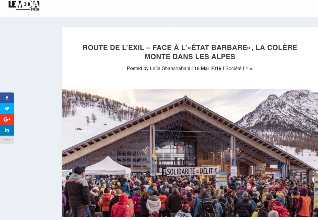 (2) Ils participaient le 23 avril 2018 à une manifestation au col de l’Échelle pour protester contre l’opération anti-migrants menée à la frontière par le groupe d’extrême droite Génération Identitaire. Trois d’entre eux ont passé plusieurs jours en détention préventive dans la prison marseillaise des Beaumettes.