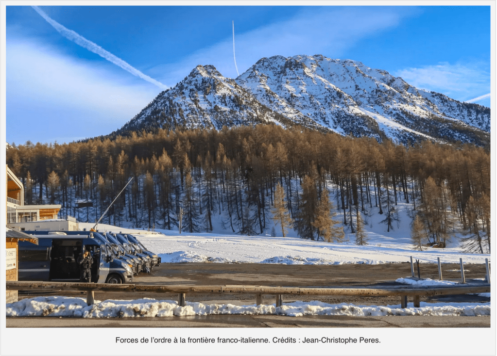Au terme d’une joyeuse maraude symbolique sur le domaine skiable, les manifestants se dirigent vers le poste frontière en scandant : « De l’air, de l’air, ouvrez les frontières ! ». Pendant de longues minutes et dans une ambiance plus tendue, ils y lisent les nombreux témoignages des migrants victimes des violences à la frontière, face à un cordon de policiers immobiles.